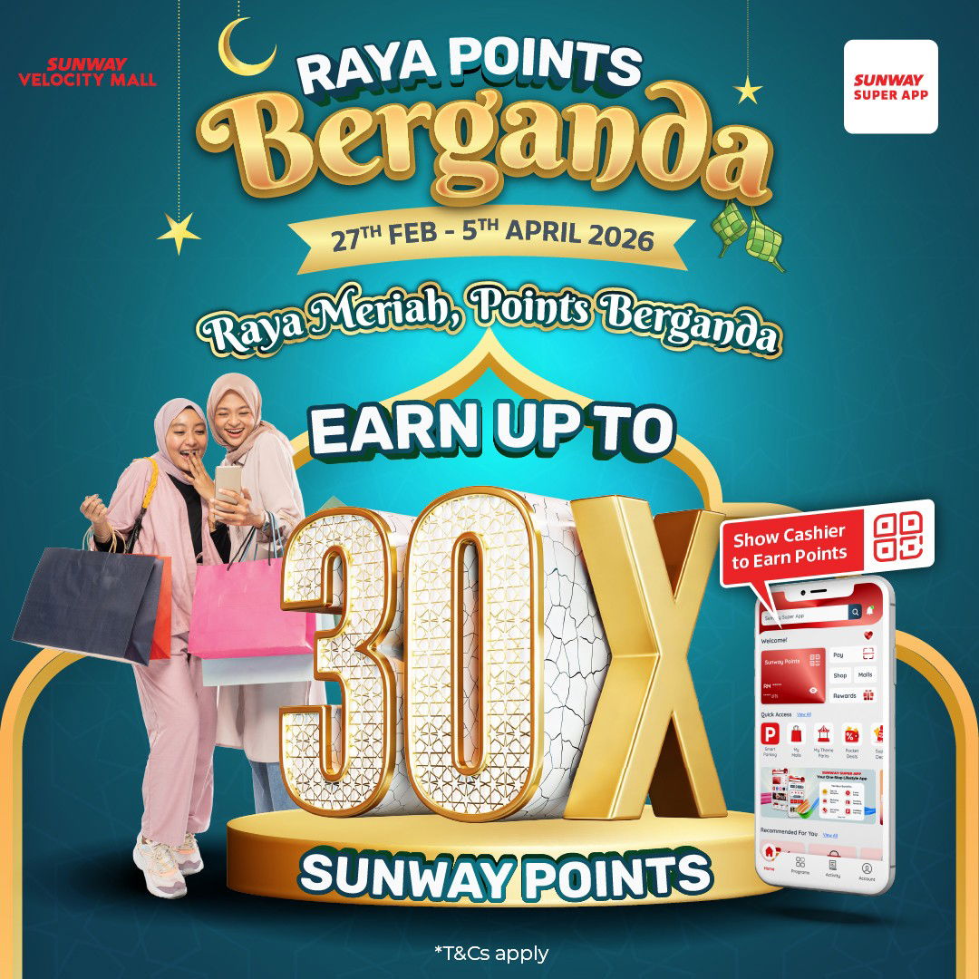 EARN UP TO 30X SUNWAY POINTS at Sunway Velocity Mall this Hari Raya from 27 February to 5 April 2026!